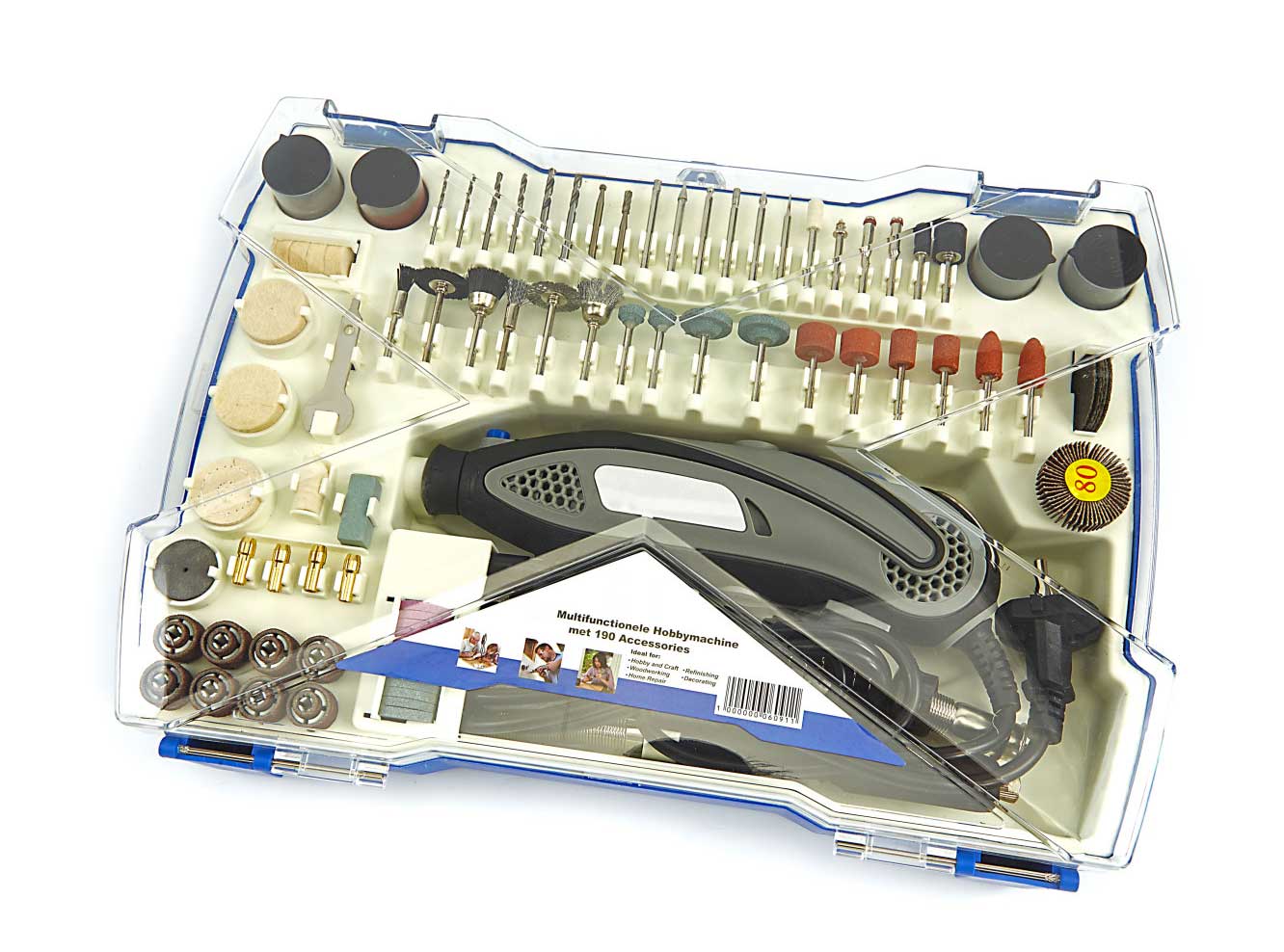 - Každé ze 190 ks příslušenství má své vlastní vlastnosti. Obrobky lze opracovávat různými způsoby, například broušením, frézováním, řezáním, ořezáváním a leštěním.