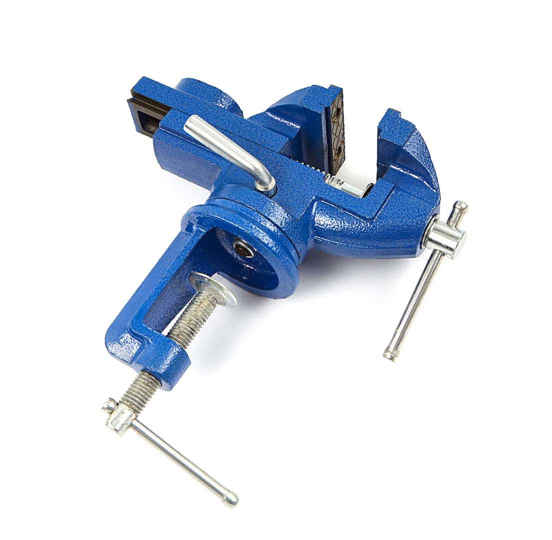 - Malý stolní svěrák s upínací svorkou, čelisti 50 mm, otočný