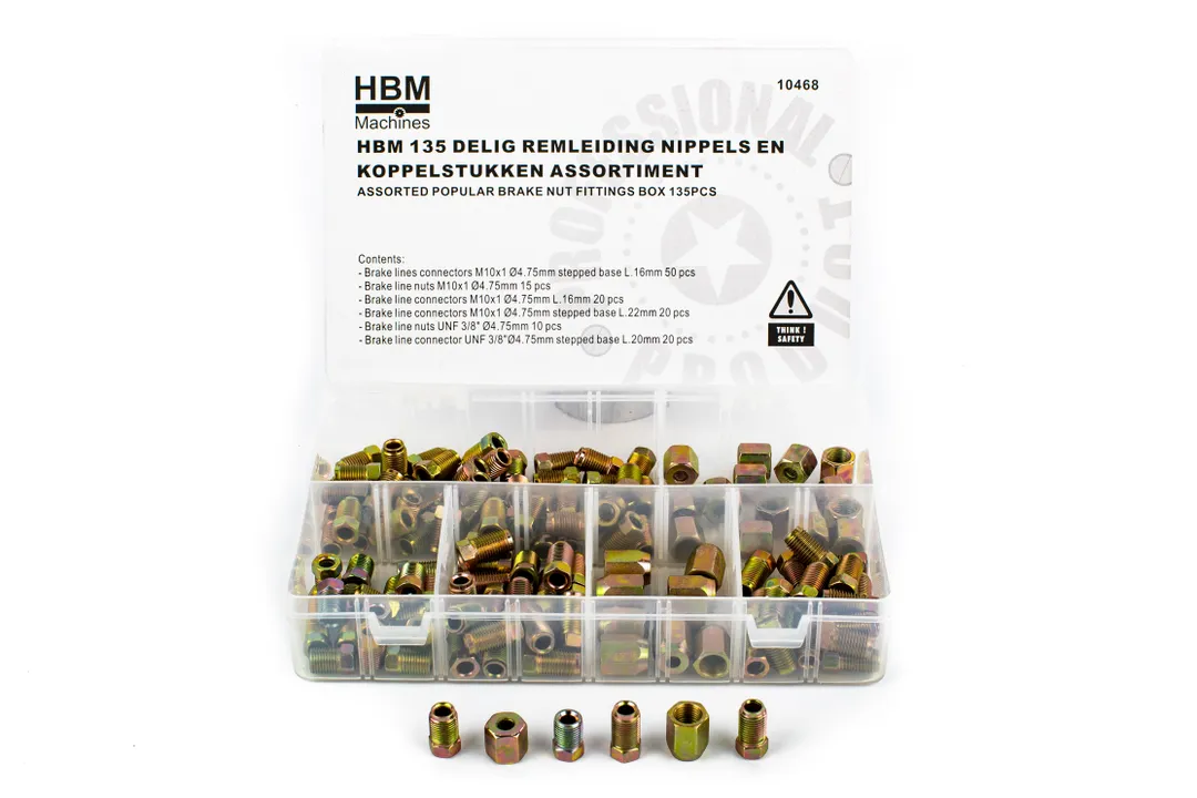 Sortiment konektorů a matic brzdových trubek, 135 dílů