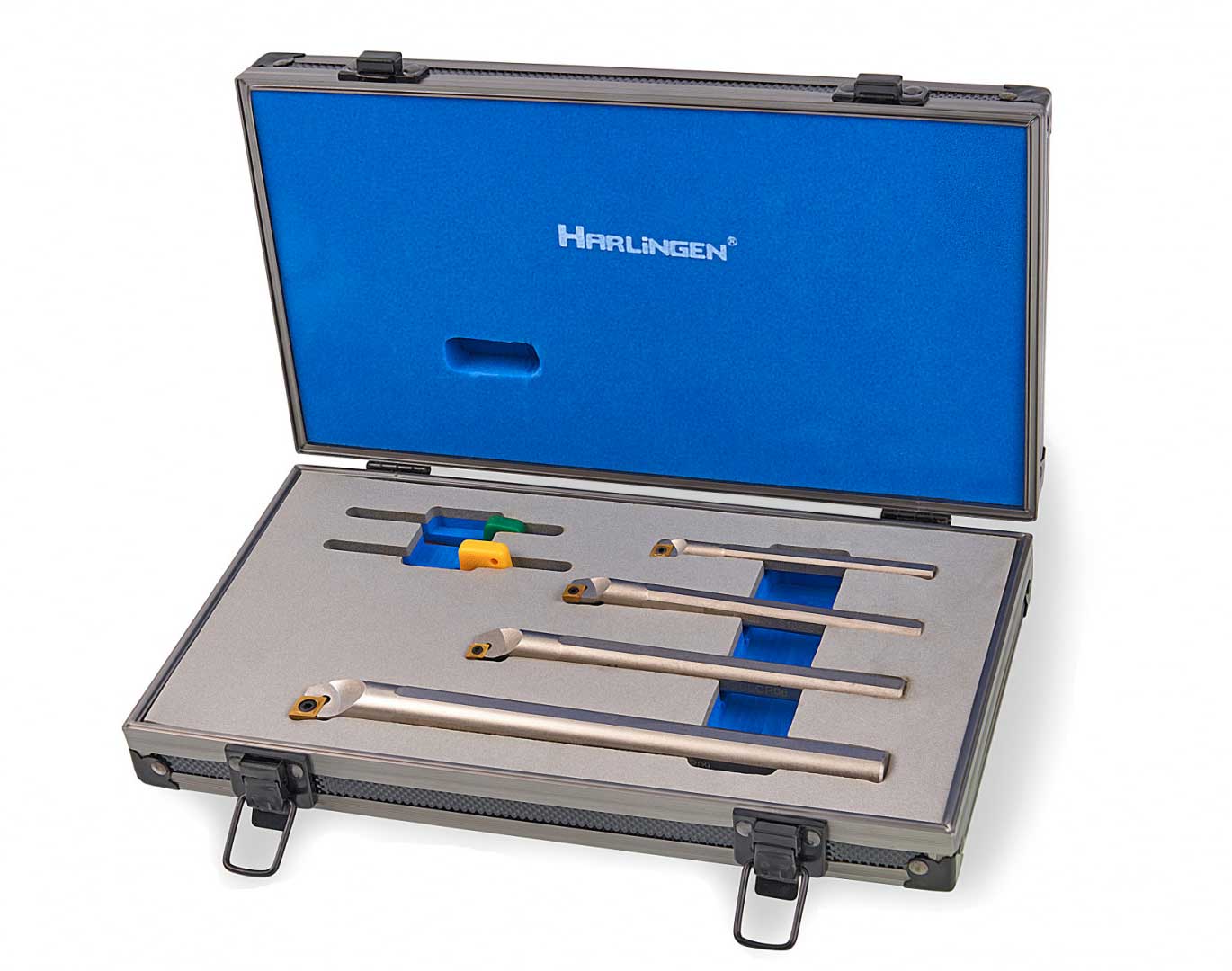 Dobrou práci chtějí odvádět jak profesionálové, tak i sebevědomí amatéři. Proto kromě upínacích nástrojů a vnějších soustružnických nástrojů potřebujete pro svou dílnu také dobré vnitřní soustružnické nástroje. Tato čtyřdílná sada od společnosti Harlingen je takovou dobrou sadou s nástroji pro provádění vnitřního soustružení. Společnost Harlingen je známá svými velmi přísnými kontrolami kvality předtím, než nástroje opustí výrobu. Sada se dodává s destičkami VBD a torxovým klíčem pro výměnu destiček. Sadu uložíte do luxusního hliníkového kufříku.